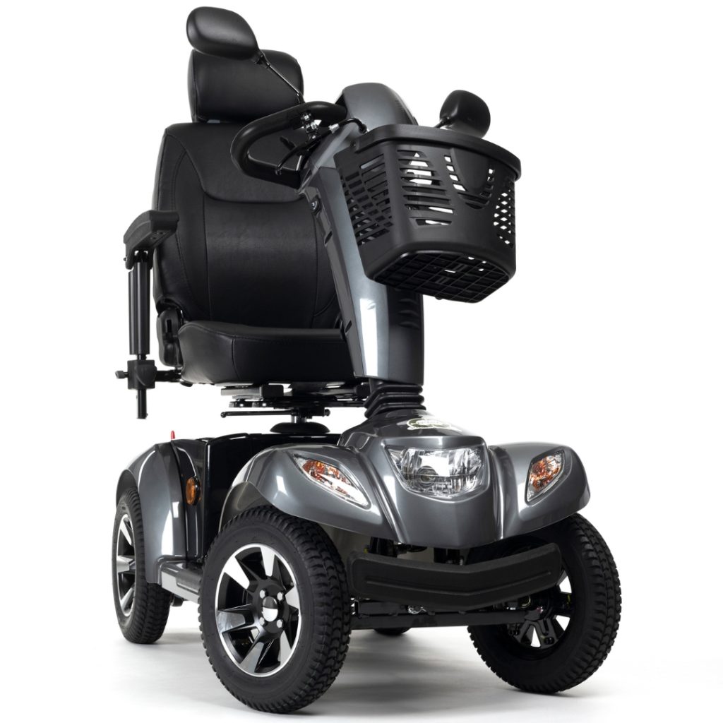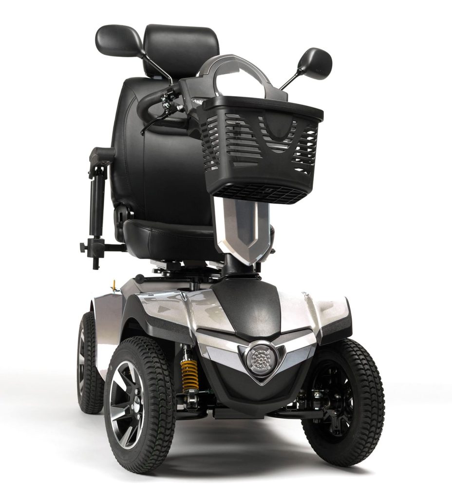 Door de 3-wieltechnologie biedt de scootmobiel een veilige stand in vergelijking met 2-wielers, zelfs met maximaal laadvermogen.